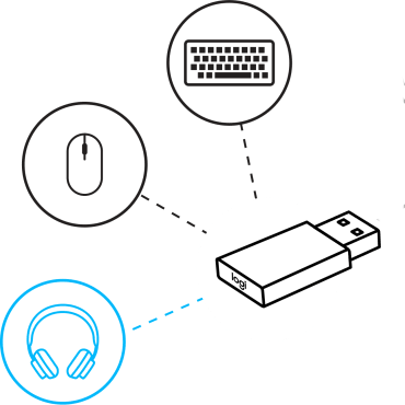 השתמשו באוזניות Zone Wireless Plus עם עד שישה מוצרים אלחוטיים נוספים של Logitech Unifying באמצעות אותו מקלט USB. מקלט יחיד זה מתחבר ליציאת USB-A במחשב שלך ומספק חיבור אמין במרחק של עד 10 מטרים (33 רגל) לעכברים ומקלדות, ועד 30 רגל (99 רגל) מהדיבורית. אין שום צורך לנתק את המקלט מהחשמל, ולכן הוא אף פעם לא הולך לאיבוד. לא צריך יותר לבחור בין האוזניות, העכבר או ציוד ההיקף האחר שלך - עכשיו אפשר להשתמש בכולם במקביל.